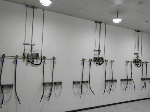 7.氣瓶間內是儲存的氣瓶應用了帶防倒鏈的氣瓶吊架穩固,氣瓶吊架使用使用、好看得體。氣瓶吊架應用了鋁碳素鋼生產制作而成。