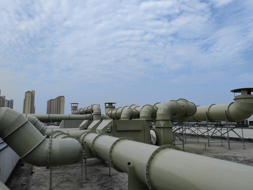 科學實驗室設計工業廢氣 → 滲透性炭濾過器 → 引離心風機 → 直接排放